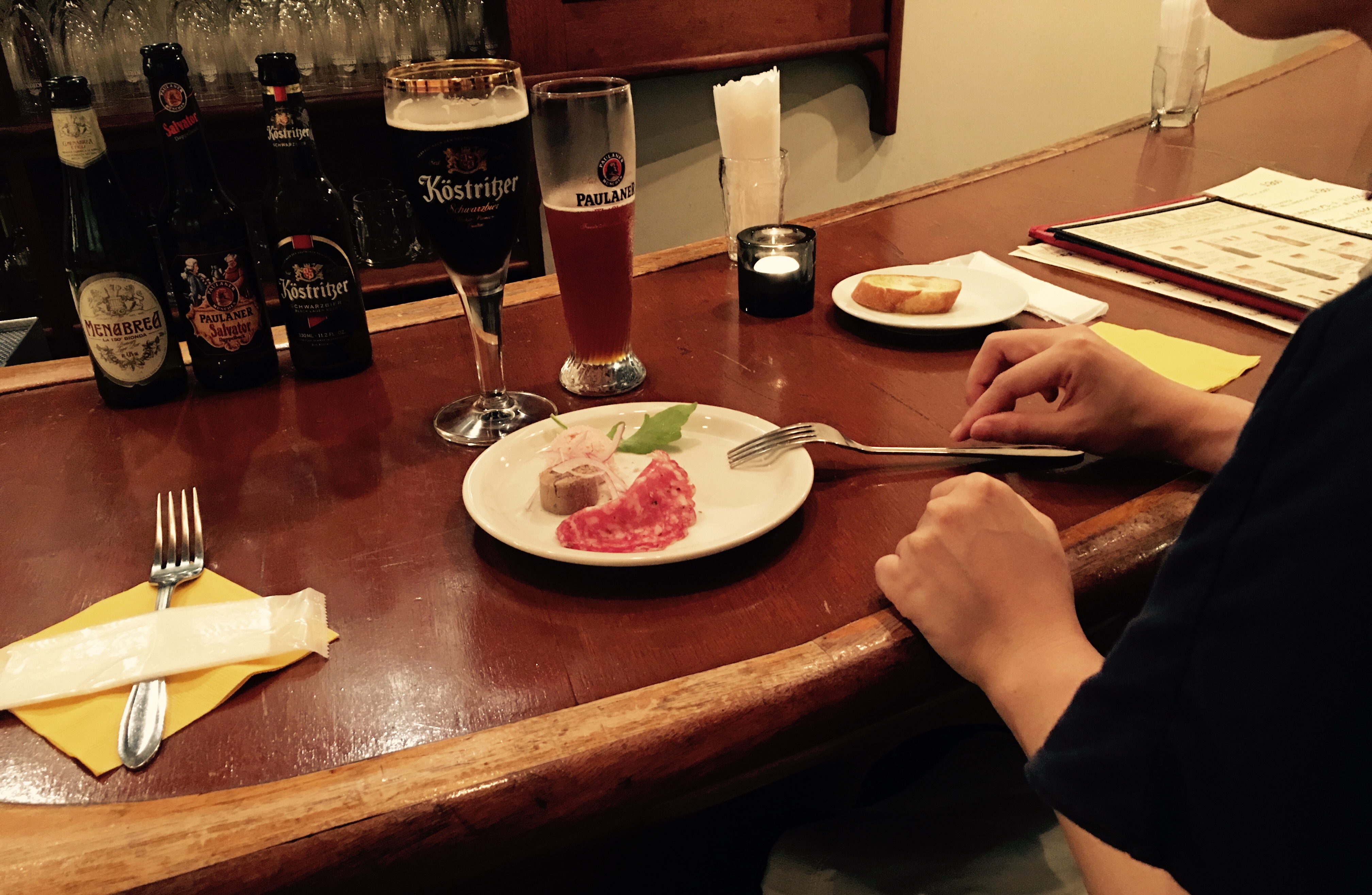 今はなきメナブレア・サルバトール。そのかわりドイツの白ビールに「エルディンガー」、イギリスの褐色ビールに「バスペールエール」そしてドイツの黒ビール「ケストリッツァー」はいつものドリンクメニューにてご用意しております☆