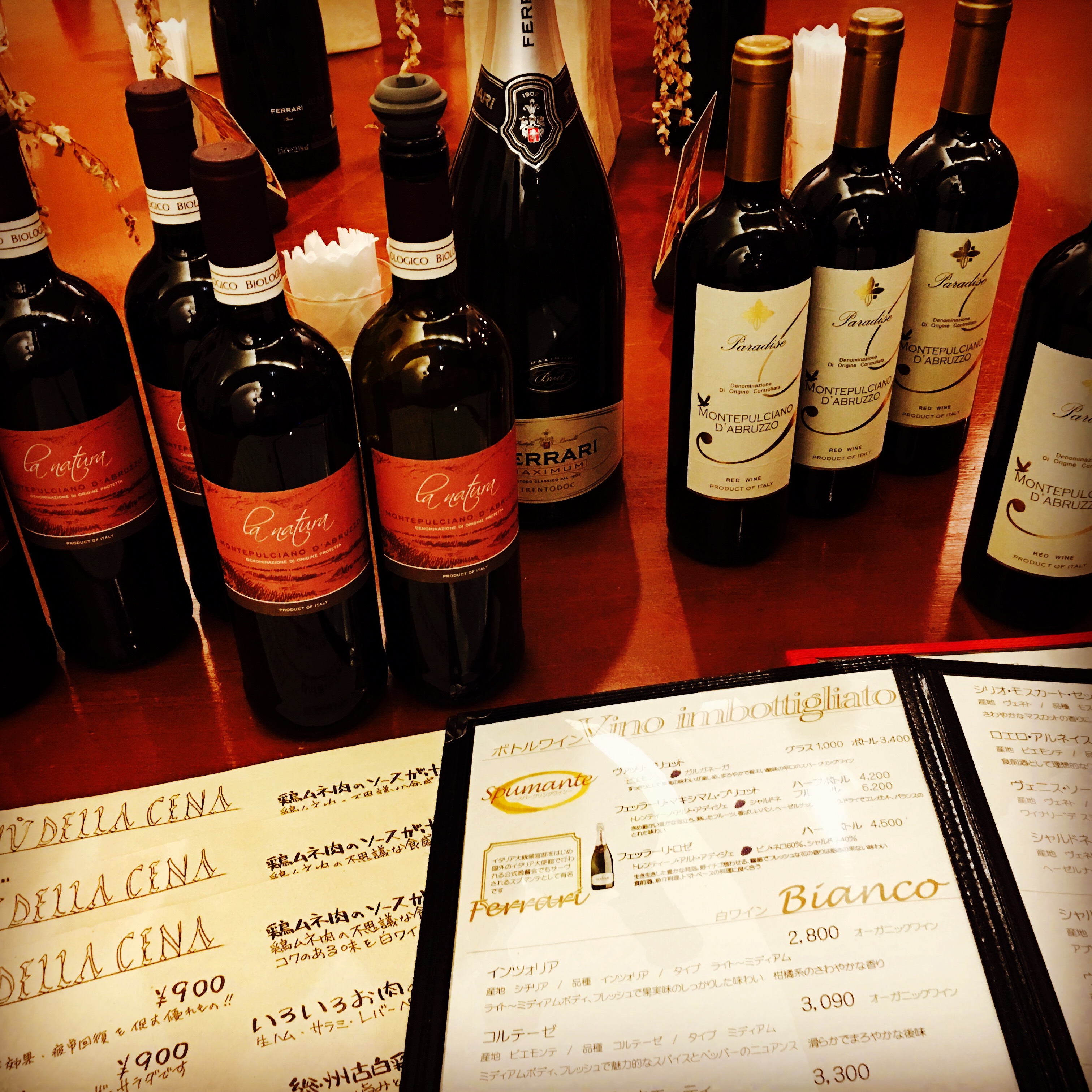 そしてなんともう一種“ワイナリーの違う”モンテプルチアーノ・ダブルッツォ(写真左・こちらはドリンクメニューにいつもある赤です)があるので飲み比べてみたらその違いがはっきりわかって楽しめます!面白いです♪