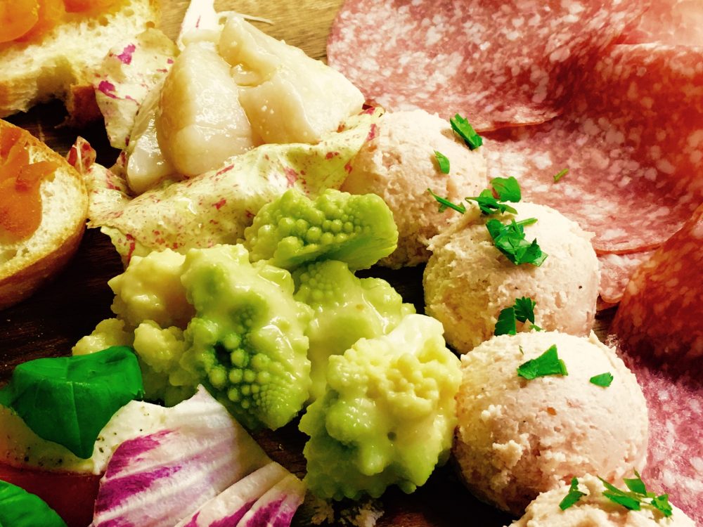 その日で内容が変わるのですが、ちょっと珍しいのがありまして。トゲトゲした緑のもの、こちらはれっきとしたお野菜で“ロマネスコ”という、カリフラワーのお仲間です!(初めて見たときギョッとしましたが)レモンドレッシングでサラダ仕立てにしております。