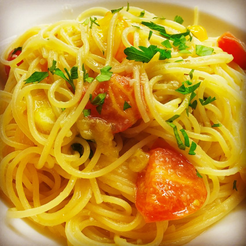 「アイコトマトのペペロンチーノスパッゲティ¥1,400」