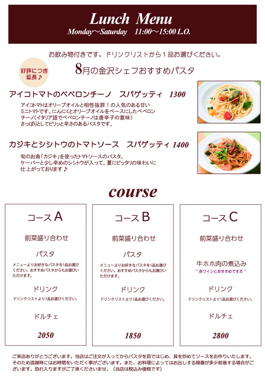 こんばんは!御茶ノ水トラットリアレモンの吉田です。今月からランチメニューに新しいコースが加わりました。