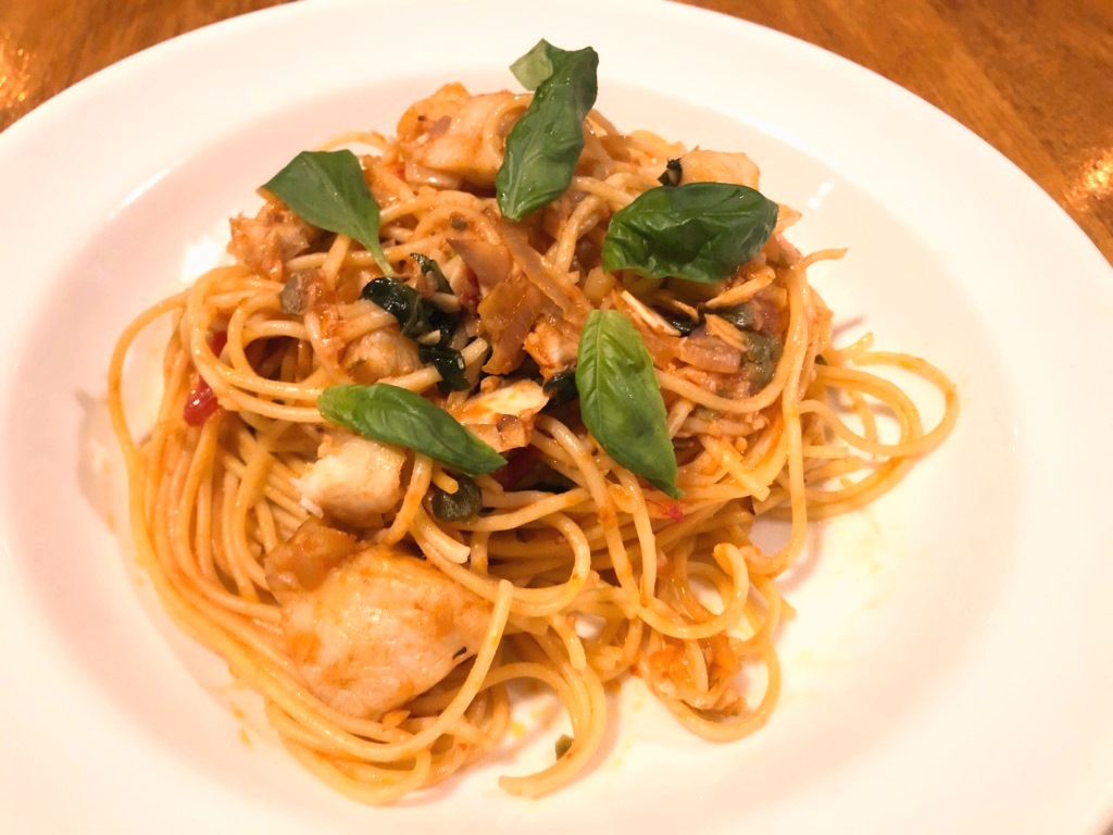 ◇◆ 鰆(さわら)とアーモンド、バジルのトマトソース スパゲッティ ¥1,400 ◇◆